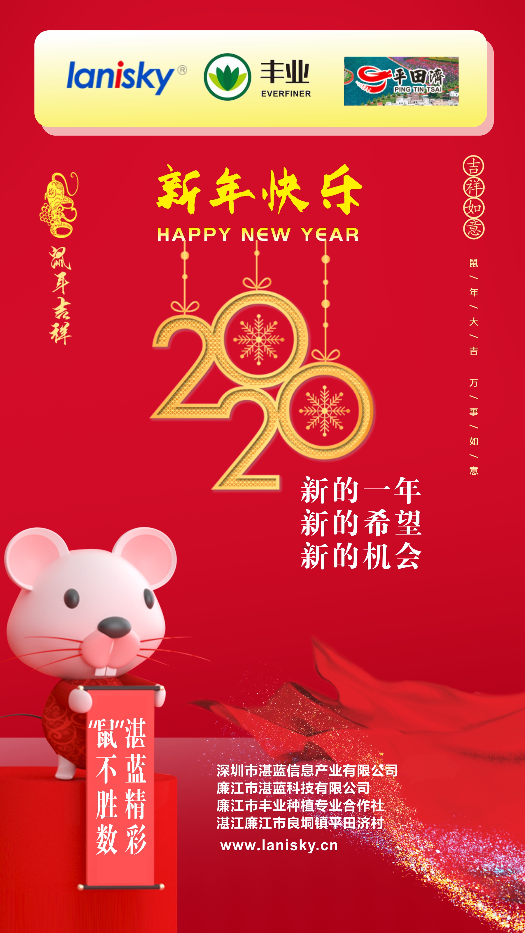 Lanisky(网站开发运营、云计算与区块链、华夏商网、蓝粤网)、丰业合作社、平田济股份恭祝全球人民2020新年快乐!湛蓝精彩,“鼠”不胜数!
