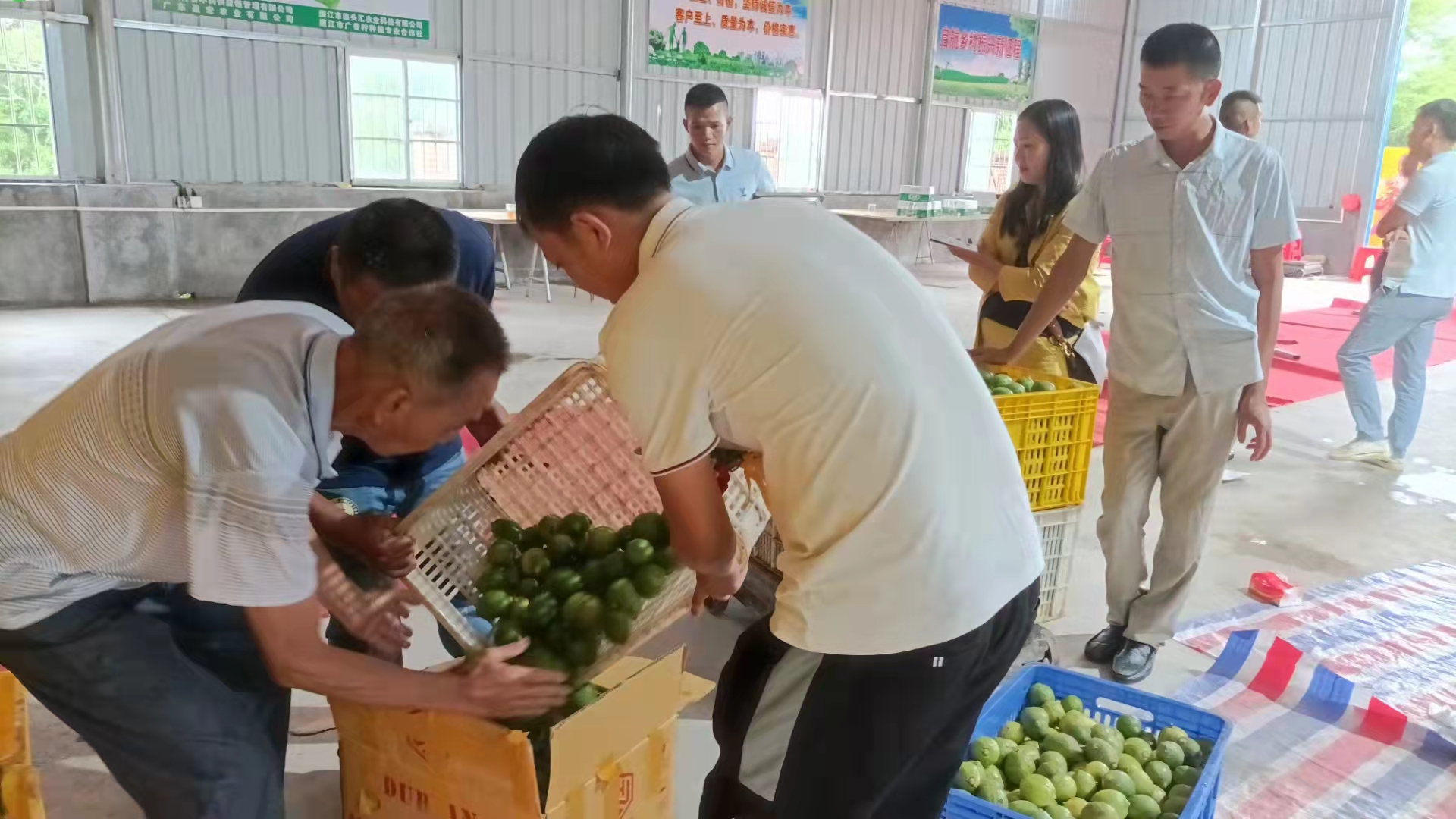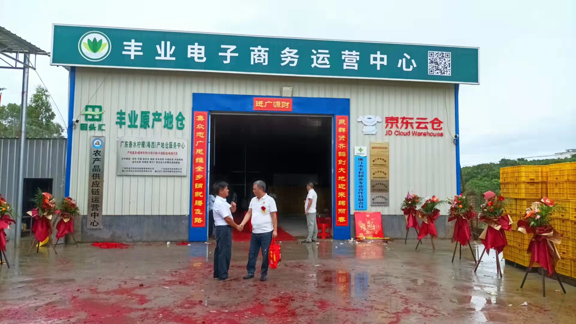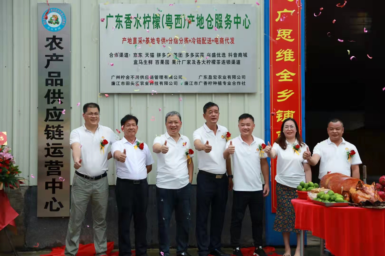 广东香水柠檬(粤西)产地仓服务中心是由广州柠舍不同供应链管理有限公司、广东盈宏农业有限公司、廉江市广香柠种植专业合作社、廉江市田头汇农业科技有限公司共同打造,采取“公司+合作社+农户+订单农业+深加工+智慧农业+产业集群”的模式,通过“种苗+农技+田间管理+农产品销售+深加工+农业金融保险”六位一体的综合解决方案,链接和赋能种植端与销售端,打造粤西、桂东南高标准香水柠檬种植基地服务平台。产地仓服务中心建有冷库、农产品分拣中心、质检中心及电商服务中心,具备农产品采购、分级分拣、保鲜、仓储、分销配送及信息处理等功能,通过产地仓对接京东、天猫、拼多多、百果园、美团、兴盛优选、果汁厂家及各大柠檬茶连锁渠道,日处理香水柠檬五万斤以上。