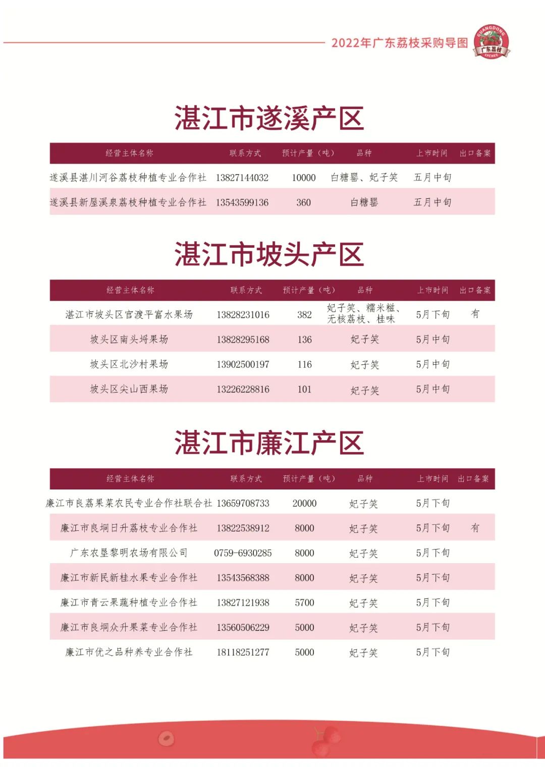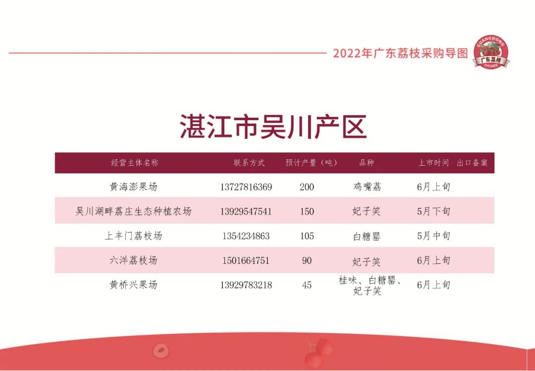 荔枝是岭南佳果的代表,同时也是湛江农业的一大支柱产业。为更好地做好今年湛江荔枝的销售工作,广泛宣传推介湛江荔枝品牌,为广大采购商提供优质服务,使更多采购商采购到我市优质荔枝产品,我们特制作了湛江荔枝采购导图,欢迎查阅。