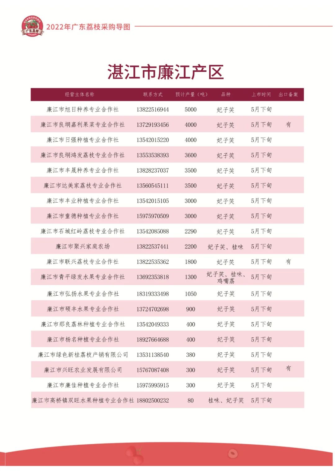| 3 | 廉江市 | 广东荔枝丰业示范基地 | 廉江市丰业种植专业合作社 |