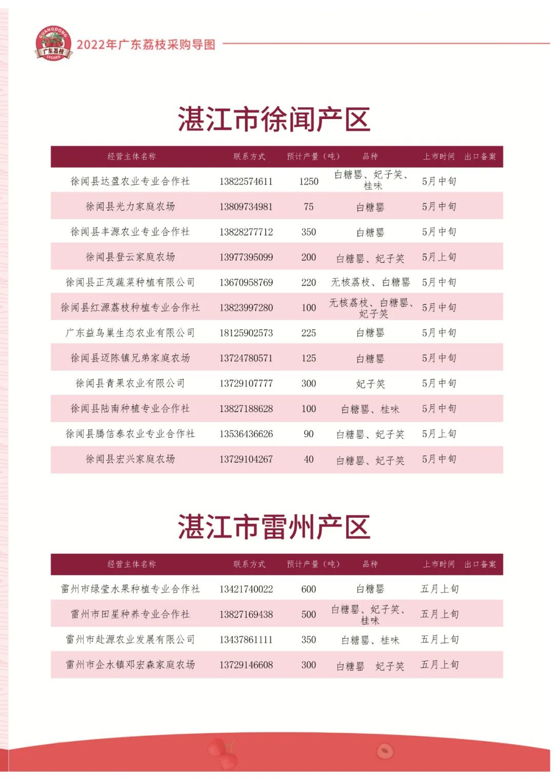 | 1 | 雷州市 | 广东荔枝赴源示范基地 | 雷州市赴源农业发展有限公司 |