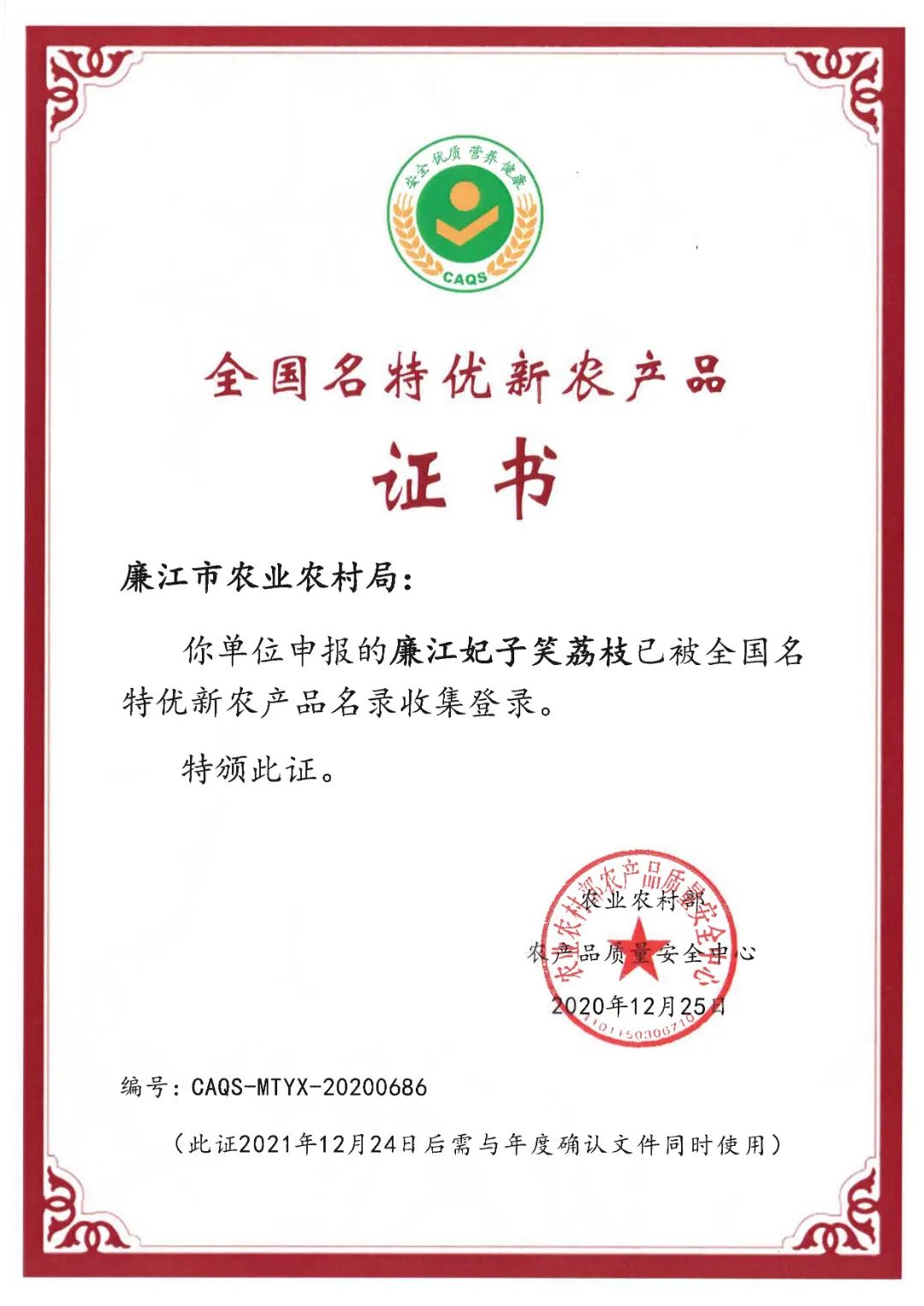 | 9 | 廉江市 | 广东荔枝优之品示范基地 | 廉江市优之品种养专业合作社 |