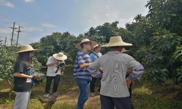 培训结束后,团队成员们前往荔枝园采访了合作社农户,合作社社长带领团队成员参观了农产品加工车间。大家与荔农们一起聊天畅想,农户们也向团队成员讲述了近些年荔枝产业的现状,与巨大的改变,希望能够借助”蜡染“以及相关的非遗文化,实现由产业到品牌的蝶变。