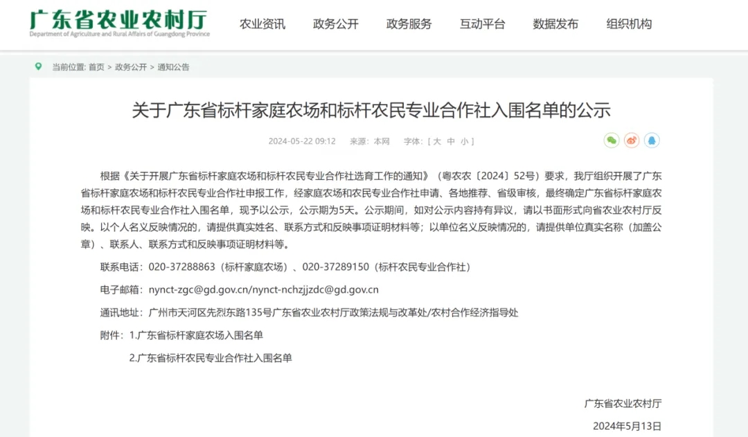 广东省农业农村厅公示了