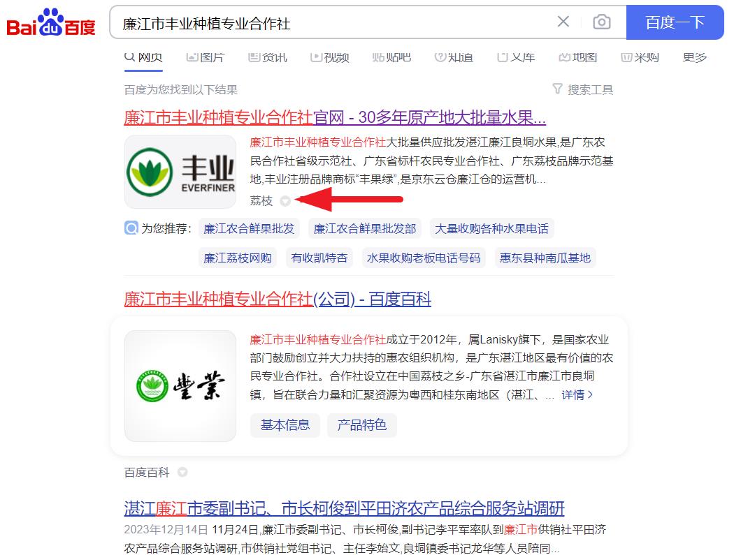丰业合作社在百度喜提“荔枝”网站名称重点标签,是全网唯一一个“荔枝”