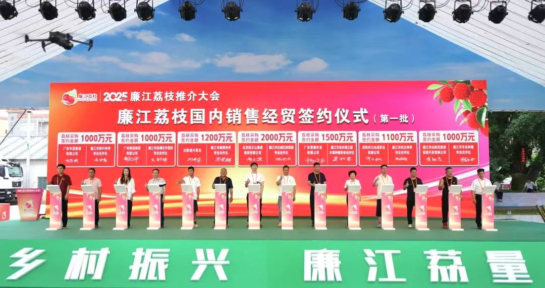此外,活动现场还对廉江荔枝进行了全方位的宣传推介,并举行了2025廉江荔枝开采仪式、廉江荔枝采购签约仪式、网络名人进村联建签约仪式,还为2025廉江市“十大荔枝种植园”“十大荔枝种植能手”“十大荔枝销售大户”颁奖,进一步推动廉江荔枝产业的发展,提升廉江荔枝的品牌影响力。