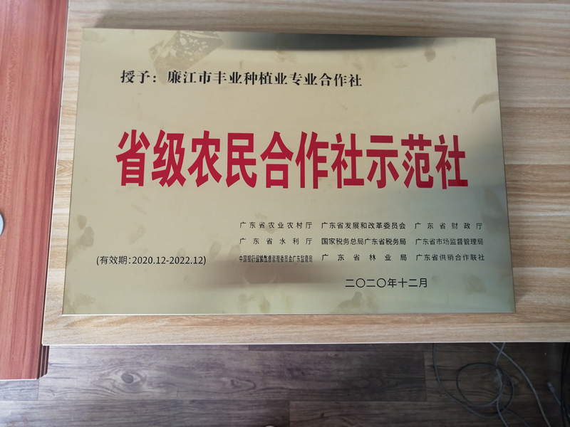廉江市丰业种植专业合作社被广东省农业农村厅评定为“2020年度农民专业合作社省...